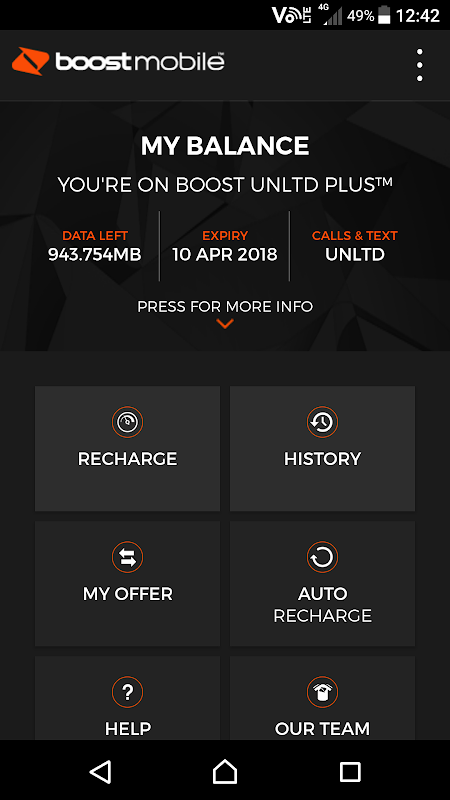 This Boost Mobile App is for customers on Boost Unlimited, Unlimited Plus, Anytime Plus, Anytime Ultra plans and can help you manage your account 24/7 including recharge, checking your balance and getting help.