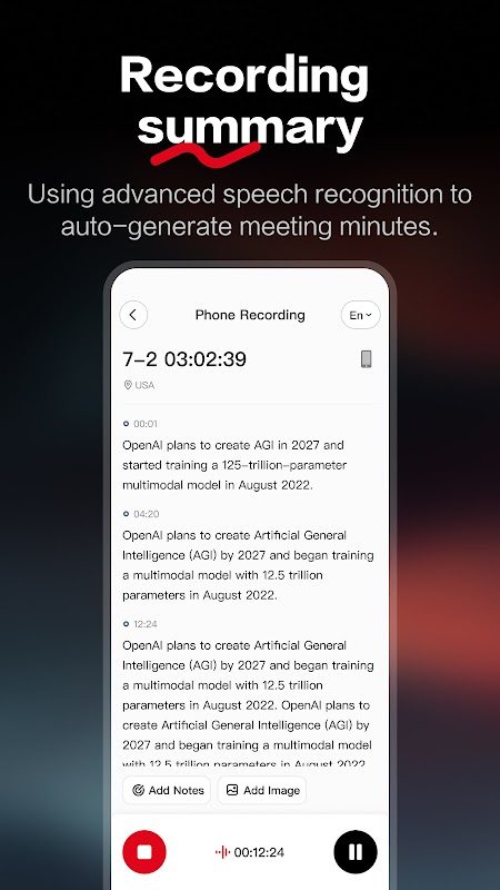 ضبط فلش هوش مصنوعی: هنگامی که کاربر کلمات سریعی مانند "اینجا بنویس" را می گوید، سیستم به طور خودکار علائم را در مطالب کلیدی وارد می کند و به سرعت متن را استخراج می کند، به طوری که ماهیت جلسه در یک نگاه مشخص می شود. پشتیبانی همزمان از تشخیص احساسات، ردیابی تکامل موضوع، و حاشیه نویسی نقش سخنران.
