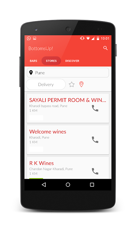 Delivery: Connects you to nearby liquor stores along with home delivery information and an in-built calling feature.