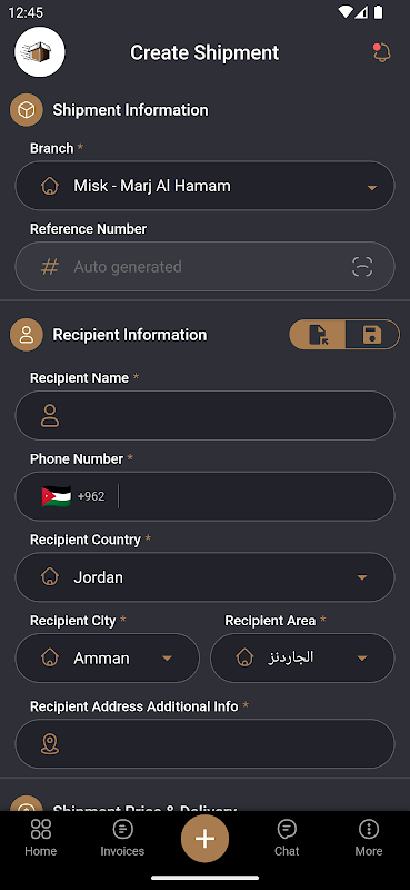 مدیریت حمل و نقل ساده: با ارائه اطلاعات ضروری مانند جزئیات گیرنده، قیمت، مشخصات تحویل، و توضیحات، محموله های جدید را بدون زحمت اضافه کنید. محموله های خود را به طور موثر از یک مکان متمرکز مدیریت کنید.