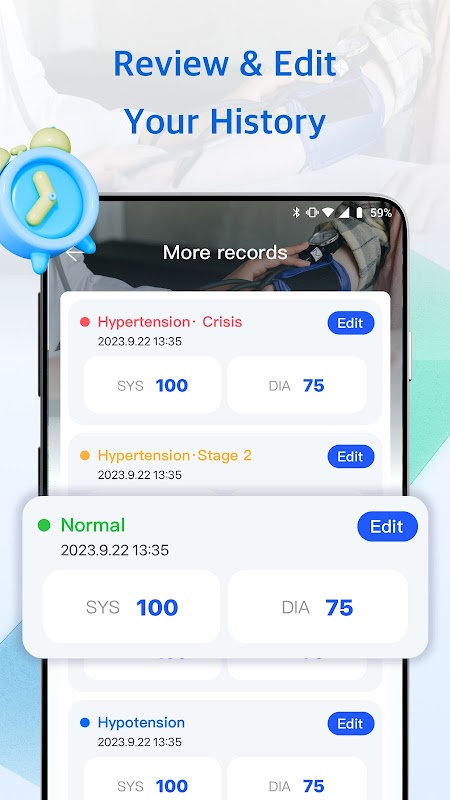 🌟به راحتی فشار خون خود را در این برنامه یکپارچه ذخیره، ویرایش و ردیابی کنید تا سبک زندگی سالمی داشته باشید.