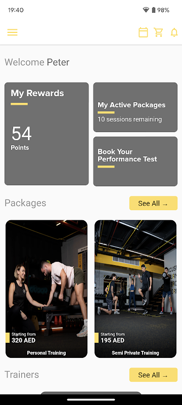امتیاز پاداش: برای هر جلسه آموزشی تکمیل شده و بسته خریداری شده، امتیاز جایزه کسب کنید. این امتیازها را برای جلسات اضافی و تست های تناسب اندام مستقیماً از طریق برنامه ما بازخرید کنید.