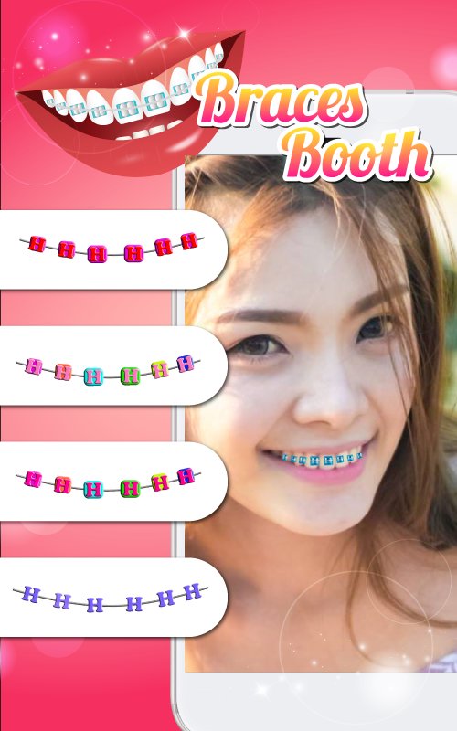 Braces Booth Apps braces on photo editor like drawing teeth. Hassle-free use Sticker with braces full coverage makeup for girl photo. More than 200 models to choose from Instasquare for pic grid, and get rid of dark spots on face and have multi picture frame, Unique Color Day A bright patterns to select for each lot. The apps this function was so popular at the moment. Who do not want to fall trends quickly download applications compatible now for dental braces. Tell them to download it for free!!!