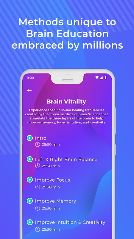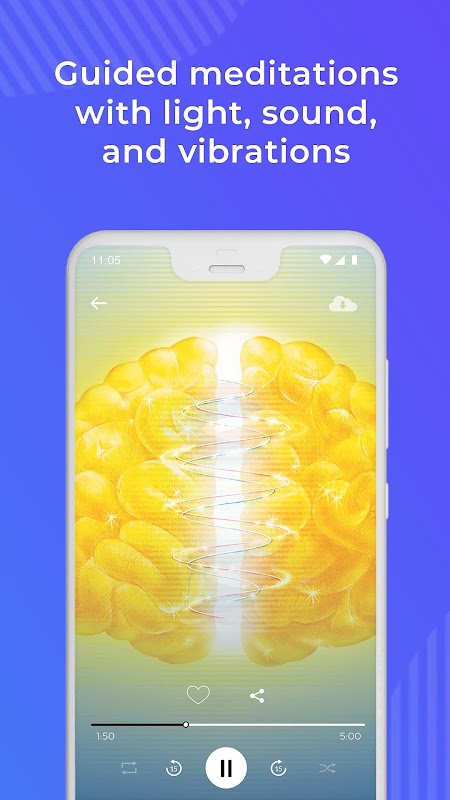 The first app in the world that contains 100+ meditations to activate your brain power through light, sound, and vibrations.