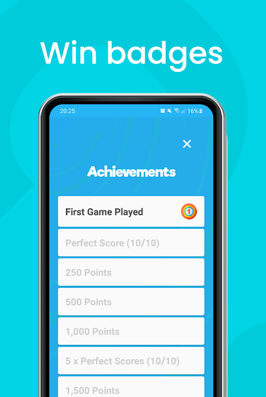- با کسب بیش از 5 امتیاز از 10 در هر مسابقه دانش عمومی ، امتیاز کسب کنید و دستاوردها را باز کنید.