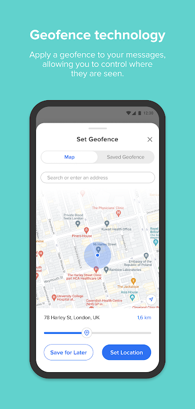 • فناوری Geofence: یک geofence را برای پیام های خود اعمال کنید، که به شما امکان می دهد مکان و زمان مشاهده آنها را کنترل کنید.