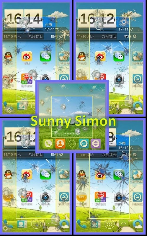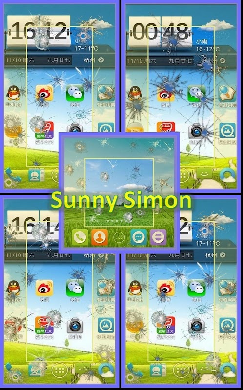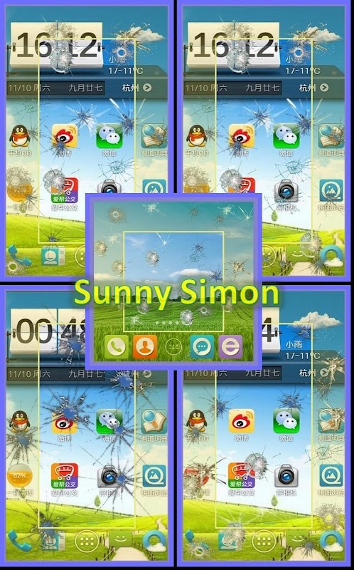 - Start the app, and touch the screen, you can see the screen “broken up” wherever touched, with sound and vibrate.