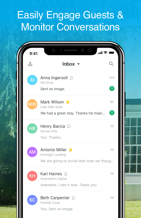همه پیامهای خود را در یک رابط کاربری آسان ادغام کنید و برای مشاهده ، پیغام گذاری ، پرچم گذاری ، و پاسخگویی به پیامهای متنی مهمان به راحتی دیده شوید.