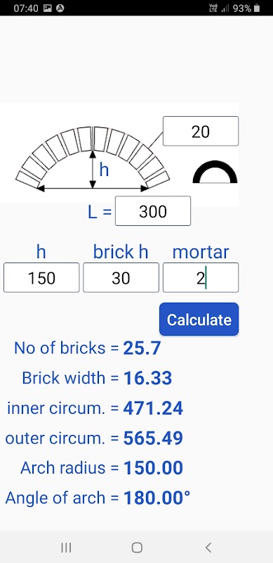 Calculate the number of bricks ,arch length