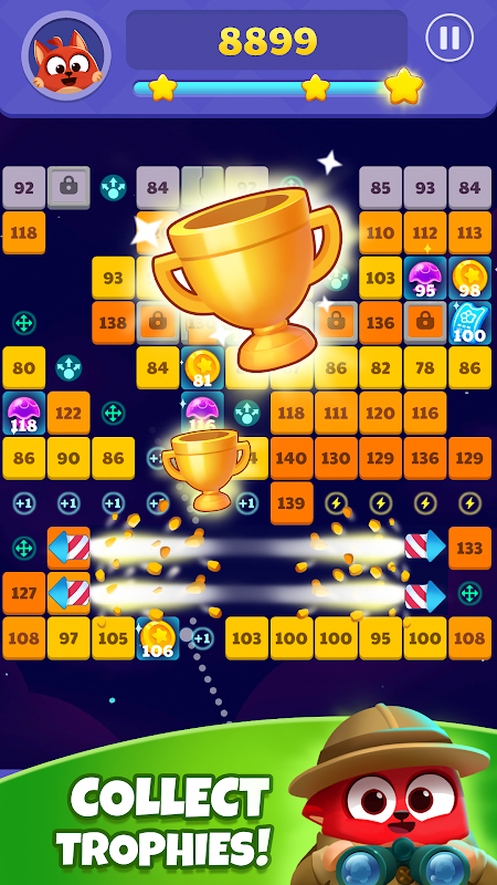 Brick Blast is a classic and relaxing brick game. All you need to do is to aim, shoot and blast as many bricks as possible! While some levels can be a bit tough. Don’t worry, we have prepared you with various cool boosters and surprise gifts to help you easily wipe out all bricks.