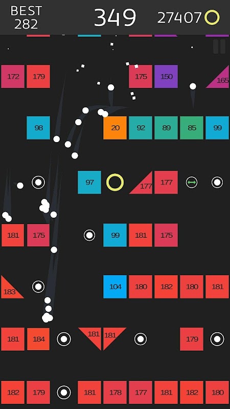 Bricks & Balls: Fall is a unique arcade game with endless gameplay. The goal of the game is to help the balls to get as low as possible, and thus gain the maximum score. On the way to the goal, you have to destroy and evade the colored blocks, activate boosters and collect coins. Boosters give you a temporary advantage, for example, speed up the balls or increase their number. And with the help of coins, you can increase the chance of boosters' appearing. Balls hitting the top of the screen are destroyed. The game ends when you do not have balls left.