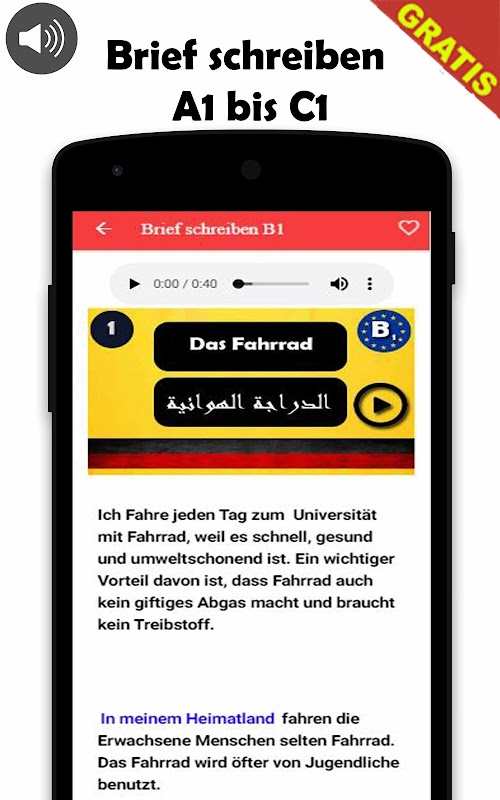 یک برنامه جدید فوق العاده با صدا ، نوشتن و مهمترین واژگان آلمانی برای همه سطوح (نوشتن A1-A2-B1-B2-C1) که برای امتحان نیاز دارید.