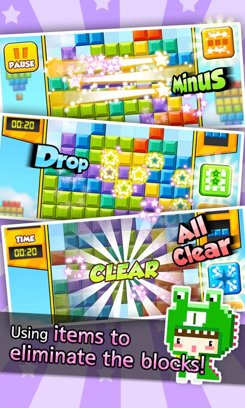Gesture style: Control every motion of the block by placing your finger on the game screen and direct the movement. Slide your finger downward quickly to drop it instantly!!
