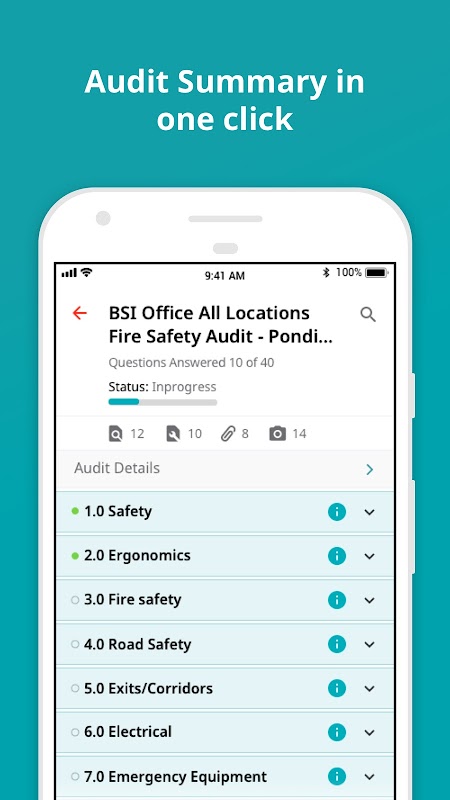 برنامه BSI Connect با سیستم های BSI Connect PLUS و BSI Connect CUSTOM شما کار می کند. به شما امکان می دهد به سرعت یافته ها را ایجاد کرده و اقداماتی را به افراد اختصاص دهید که توسط شواهد عکاسی از دستگاه تلفن همراه شما پشتیبانی می شوند. می توانید این یافته ها و اقدامات را به صورت جداگانه یا به عنوان بخشی از ممیزی ، با استفاده از قابلیت تبدیل صدا به متن ، مطرح کنید. موارد به روزرسانی و اقدامات خود را در زمان واقعی به دستگاه خود هدایت می کنید. وقتی ارتباطی در دسترس نباشد ، برنامه در حالت آفلاین نیز کار خواهد کرد.