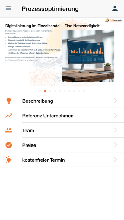 برنامه رسمی Business-Solution-Tools.de ما را دریافت کنید! اخبار، پیشنهادات، گالری رسانهها و بسیاری موارد دیگر را میتوانید در زمان حرکت فراخوانی کنید. در حال حرکت در مورد شرکت ما اطلاعات بیشتری کسب کنید و همیشه با ما در تماس باشید. شما موبایل هستید - و از این به بعد ما هم هستیم!