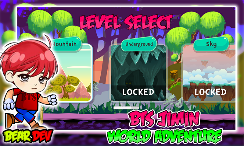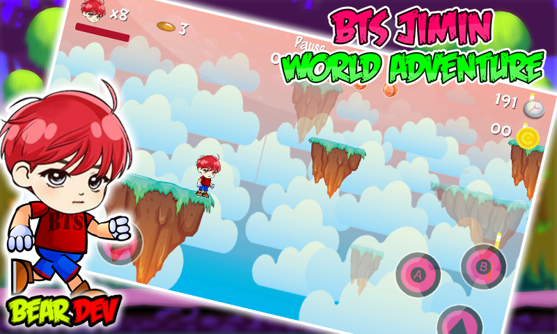 BTS Jimin World Adventure is a classic platform, arcade run game with a journey of through the jungle world that brings your childhood back. This classic arcade game will make you addict to like the world and the jungle world.