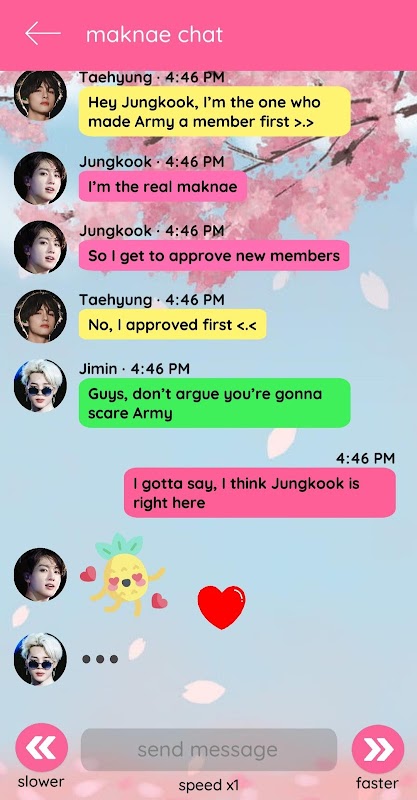 This app also includes a chatbot feature (separate from the content of the game) that you can use to type your own messages to the members.