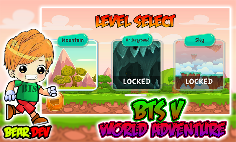 BTS V World Adventure is a classic platform, arcade run game with a journey of through the jungle world that brings your childhood back. This classic arcade game will make you addict to like the world and the jungle world.