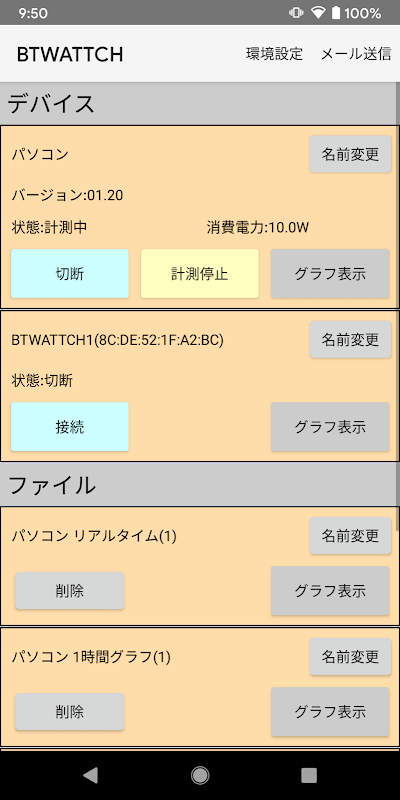 این یک برنامه کاربردی است که داده های مختلفی مانند مصرف برق ، جریان و ولتاژ اندازه گیری شده توسط Watt Checker REX-BTWATTCH1 از سیستم های RATOC را نمایش می دهد.