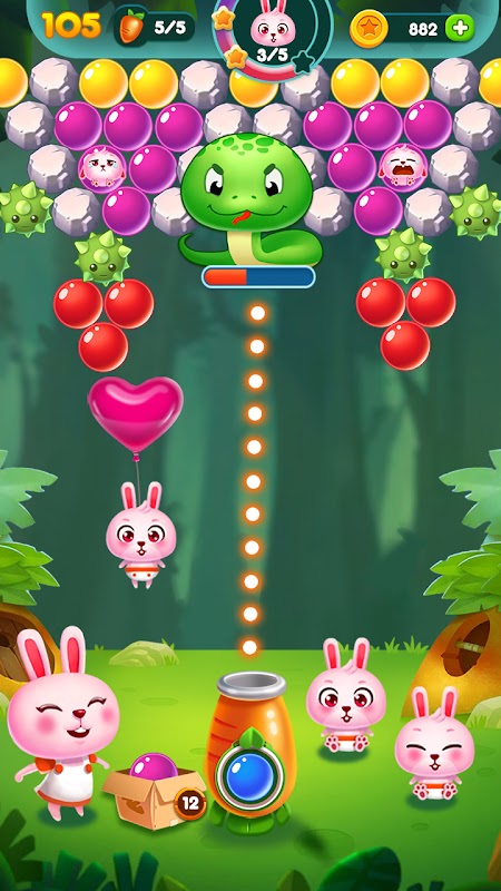 🐰 Match at least 3 bubbles of the same color or more to pop the group