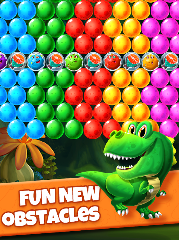 Welcome to the happy life of a dinosaur family, cute diansaur babies hiding in the depths of bubble jungle, slide your fingers, eliminate colored bubbles