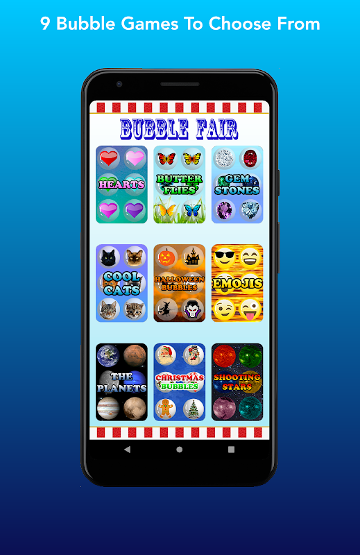 Bubble Fair is a Bubble Shooter Game, that has 9 bubble games to play.