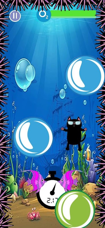 Tobey, the Cat is drowning. Help him float inside bubbles to survive underwater