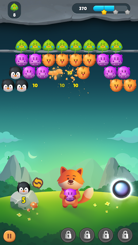 در این بازی گاه به گاه رایگان باید یک حباب را انتخاب کنید تا آن را در ردیف حباب های دیگر شلیک کنید و 3 یا بیشتر از بین ببرید تا آنها از بین بروند. هر حباب یک حیوان ناز است!