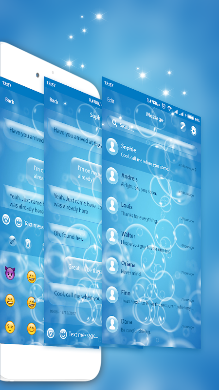 Using blow bubble water sms theme, you can customize text message backgrounds really easily with just 3 taps.