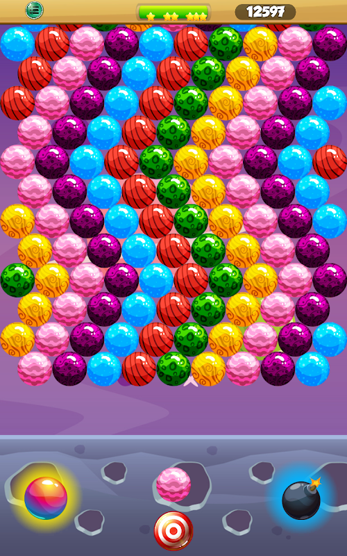 Match at least 3 bubbles of the same color to pop the combination, clear the board and win points.