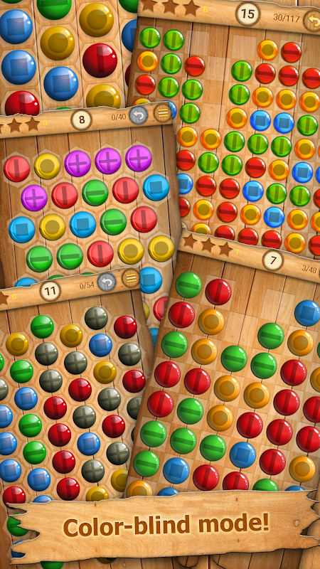 * توپ شکن افرادی که با رنگ ها پشتیبانی می کند. برو به تنظیمات و روشن / خاموش "رنگ کور" حالت یک "چشم" آیکون کلیک کنید.