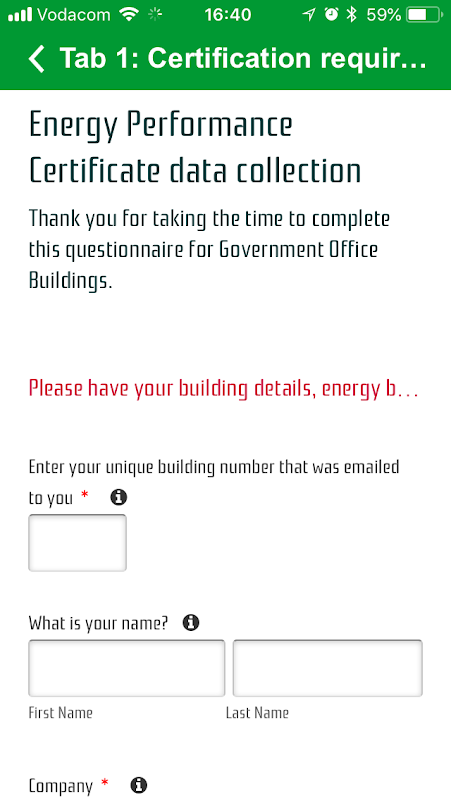 This app will allow an ESCO (or energy auditor) to submit the information required to apply for an Energy Performance Certificate (EPC) for a building in South Africa under the SANS 1544:2014 standard.