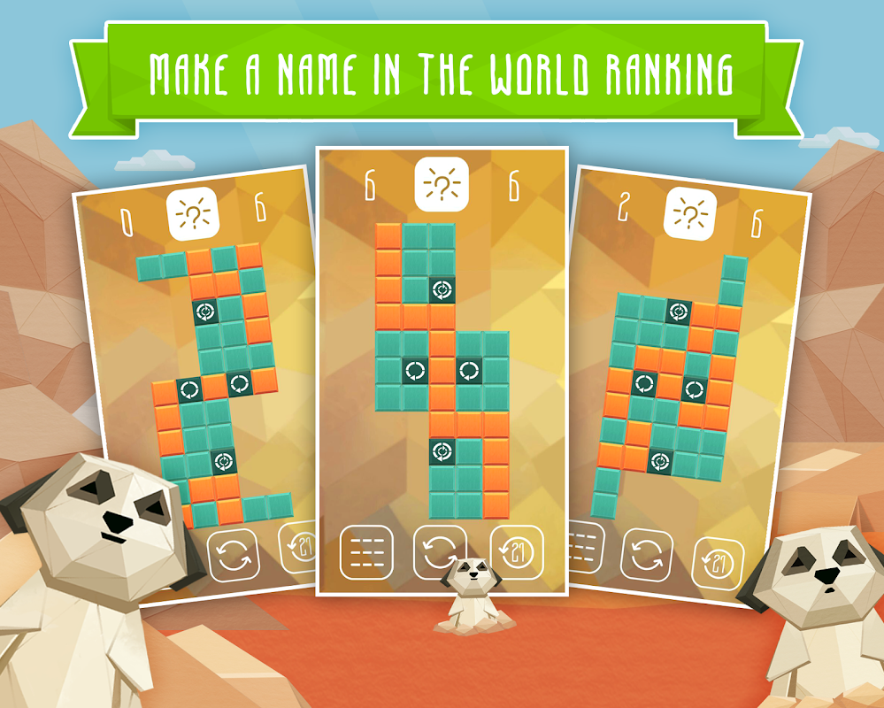 The rules are simple: turn the blocks to form an unbroken row of orange squares from top to bottom of the playing area. If you’re having trouble doing it, you can always cancel a move, replay a level or just use a hint. Watch the number of your moves and get golden stars.