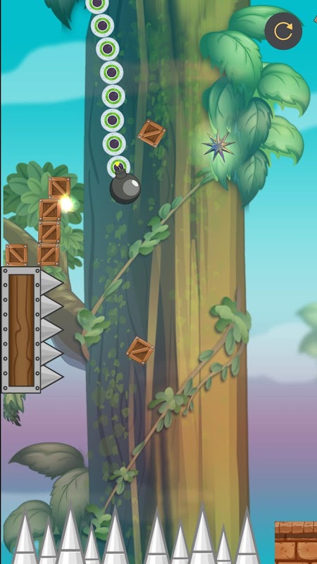 شما نقطه سوختن را کنترل می کنید. این دستگاه می تواند طناب هایی را که بمب در آن وصل است ، اسلاید ، حرکت کند ، برش دهد ، بسوزاند و از قوانین فیزیک برای آوردن بمب به ستاره استفاده کند. همچنین می توانید بلوک ها ، آجرها ، جعبه ها و هر آنچه را که در دست دارید در هر سطح فشار داده و فشار دهید تا بمب را به ستاره چرخان و براق منتقل کنید.