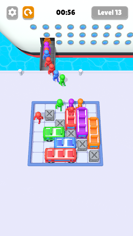 در این پازل آسان برای یادگیری سخت به تسلط، شما باید به طرز ماهرانه ای اتوبوس ها را به مکان های صحیح خود بلغزانید و فضاهایی ایجاد کنید که مسافران بتوانند از آن عبور کنند تا وارد شوند!