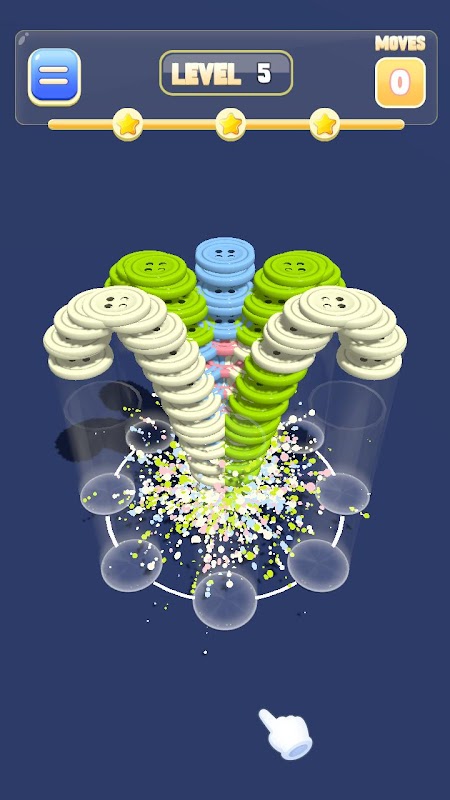 Button Sort Mania یک بازی پازل آرامش بخش و جذاب است که مهارت های حل مسئله و صبر شما را به چالش می کشد. در بازی، چندین لوله یا بطری پر از لایههایی از دکمههای رنگی مختلف به شما ارائه میشود. هدف این است که دکمه ها را طوری مرتب کنید که هر لوله فقط یک رنگ داشته باشد.