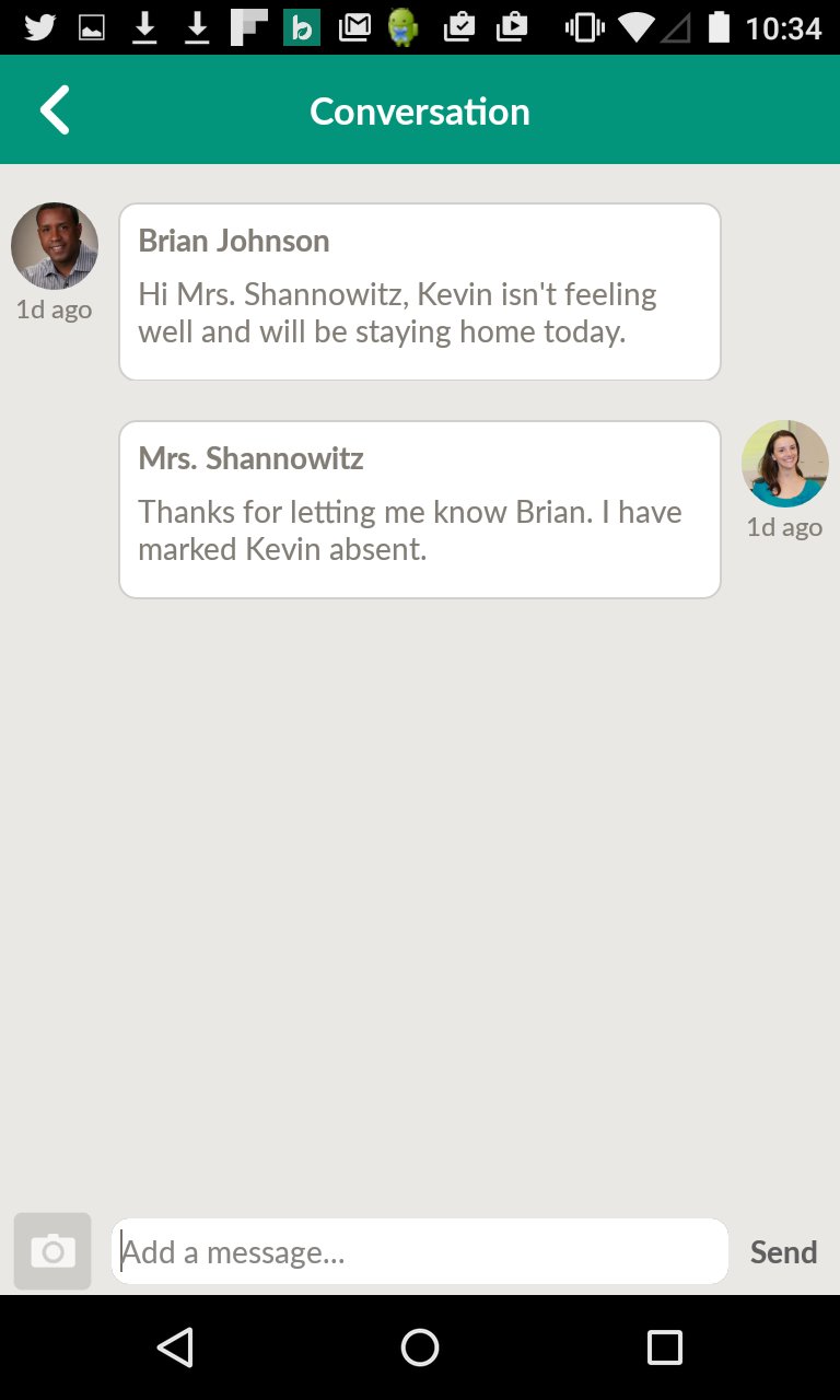 • Teachers, parents and students can easily connect without sharing email or personal phone numbers.