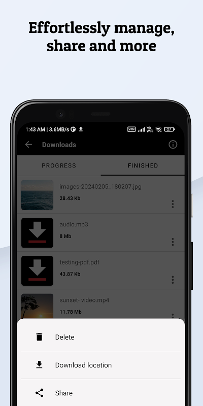 * پیشرفت دانلود را به راحتی از طریق نوار دانلود نظارت کنید.