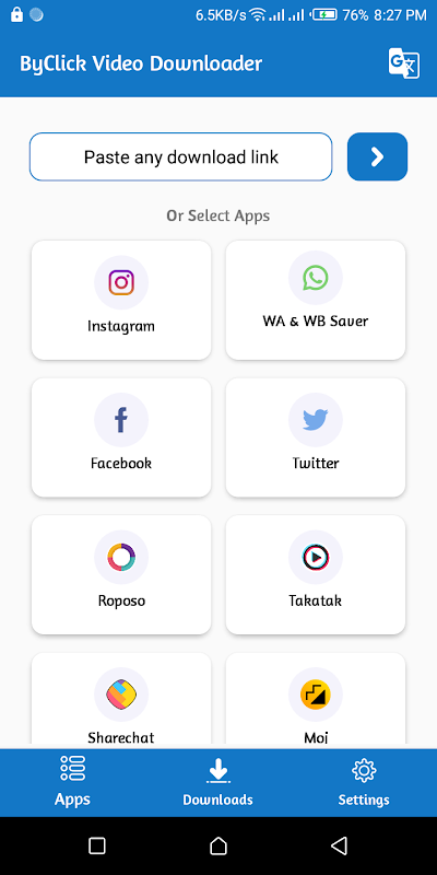 By Click Video Downloader allows you to download videos from social media apps.By Click Video Downloader simple tool, you can quickly and easily download audio, video, and image files from the application's database.In simple terms, By Click Video Downloader is a full-fledged download accelerator and Downloader.By Click Video Downloader allows you to pause and resume downloads, download in the background and download several files at the same time.By Click Video Downloader comes with a clean and neat design and the interface is so user.With just one-click you can begin building a collection of your favorite Internet videos by downloading them.By Click Video Downloader is a peer-to-peer and legal file Downloader app that specializes in videos and music.For people who favor high-resolution videos, this is the perfect choice for downloading HD videos from various online video sharing.By Click Video Downloader is able to connect directly to your Video Player and MP3 player, allowing you to transfer songs to and from your device.There is no need to download every video separately, by hand.With By Click Video Downloader, not only can you download videos with one click, you can also watch your videos immediately using the built-in video viewerThe application also allows users to resume broken or dead downloads by poor connection or something like that, schedule.It offers easily accessible features of all kinds since the app is specially designed for the user, making it easy to use..you can start downloading videos from almost any application.This By Click Video Downloader is equipped with advanced video loading technology and hardware acceleration technologies.Our mission is the easiest video downloader available.