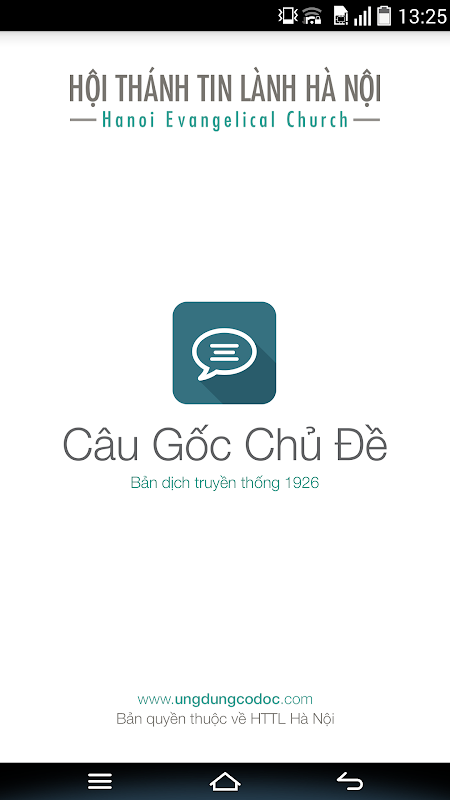 Hội Thánh Tin Lành Hà Nội phát hành ứng dụng “Câu Gốc Chủ Đề” bản truyền thống 1926, bao gồm nhiều chủ đề được trình bày trực quan và dễ sử dụng. Ước mong lời Chúa được truyền tải qua ứng dụng này sẽ có ích cho Quý vị trong sự dạy dỗ, bẻ trách, sửa trị, dạy người trong sự công bình (II Ti-mô-thê 3:16)