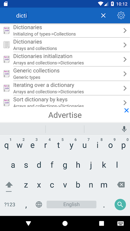 ✓ The application is a good tool during the exam or the preparation to the interview because it contains a reference to frequently used operations in different programming languages.