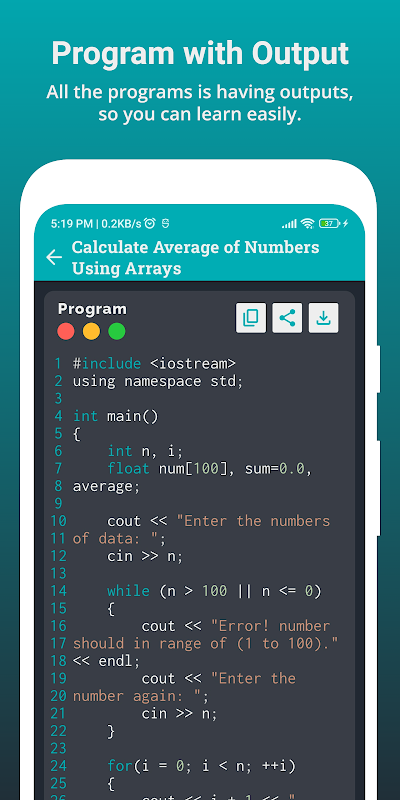 یادگیری زبان برنامه نویسی C++ با استفاده از تمرین راهی آسان برای یادگیری سریع برنامه نویسی است. در این برنامه، هر موضوع حاوی نمونه های خاص خود با خروجی های منحصر به فرد است.
