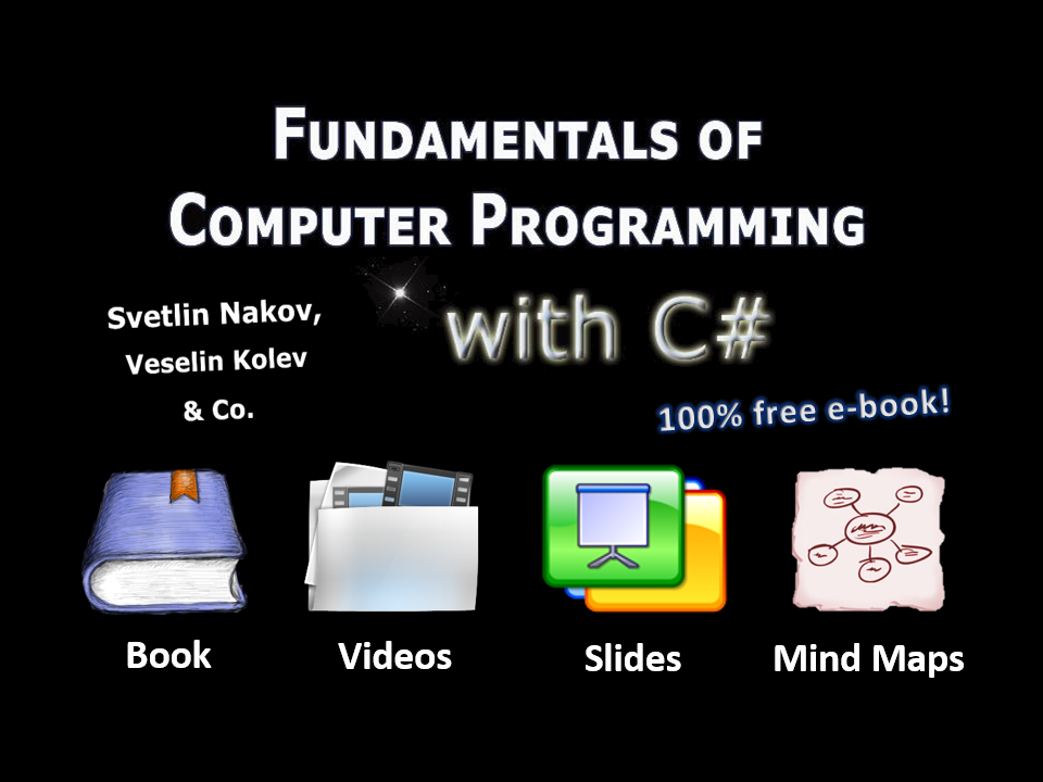 This free book on fundamentals of programming teaches the major programming concepts and way of thinking needed to become a good software engineer and the C# language in the meantime. It is a great start for anyone who wants to become a skillful software engineer. The books does not teach technologies like databases, mobile and web development, but shows the true way to master the basics of programming regardless of the languages, technologies and tools. It is good for beginners and intermediate developers who want to put a solid base for a successful career in the software engineering industry. The book is accompanied by 27 free video lessons on C# programming (42 hours), presentation slides (27 PPTX presentations) and mind maps, as well as hundreds of exercises with solutions and live examples.