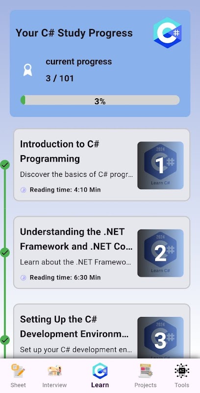 با برنامه یادگیری کاملاً اصلاح شده ما، که اکنون دارای یک رابط کاربری مدرن و ویژگی های جدید قدرتمند است، مهارت های C# خود را به سطح بعدی ببرید! "برنامه نویسی سی شارپ برای مبتدیان" 101 موضوع ضروری، درس های عمیق، مثال های تعاملی و تمرین های عملی را ارائه می دهد. چه مبتدی باشید و چه نیاز به تجدید نظر داشته باشید، برنامه ما گام به گام شما را از طریق اصول C# و مفاهیم پیشرفته راهنمایی می کند.
