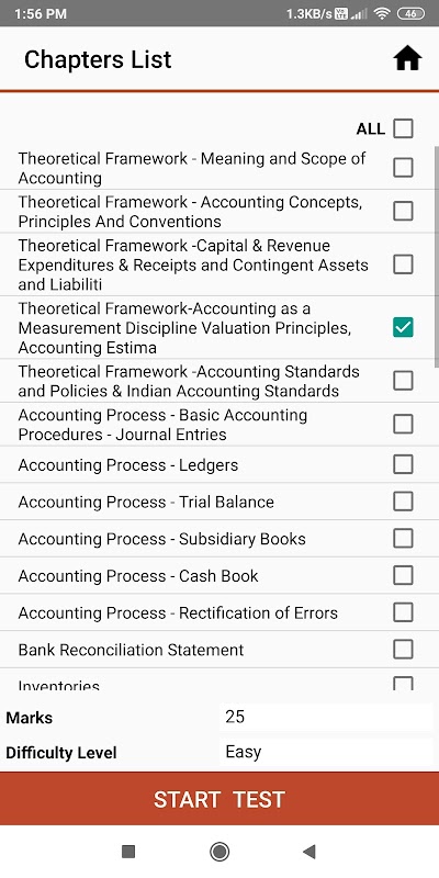 در نسخه رایگان برنامه Exam CA Foundation شما 3 تست رایگان را در «Take a Test» دریافت خواهید کرد و همچنین در قسمت یادداشت ها 3 یادداشت را از هر موضوع دریافت خواهید کرد.