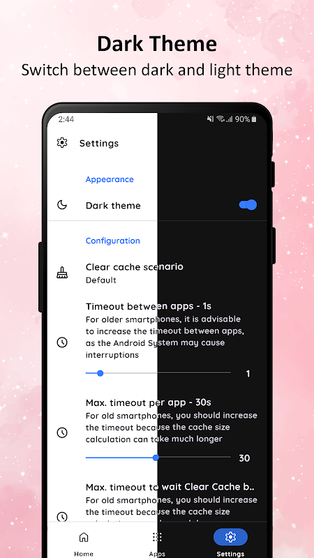 Cache Cleaner به شما کمک می کند تا با پاک کردن فایل های کش برنامه ها فضای ذخیره سازی رایگان بیشتری داشته باشید. تنها با یک ضربه تمام فایل های کش غیر ضروری به صفر پاک می شوند. تمام حافظه پنهان برنامه را تجزیه و تحلیل می کند و حافظه پنهان برنامه های انتخابی را به طور خودکار پاک می کند.