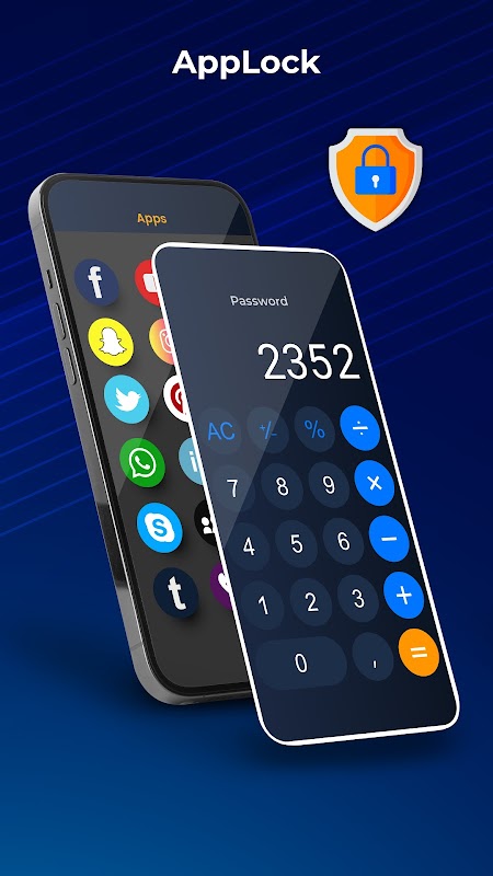 برنامه نمایش عکس و قفل ماشین حساب به عنوان یک ماشین حساب ساده کار می کند. قفل برنامه مدیریت فایل و ماشین حساب به پنهان کردن داده ها کمک می کند. قفل برنامه به عنوان طاق گالری، قفل ویدیو، خزانه مخفی و قفل عکس کار می کند.
