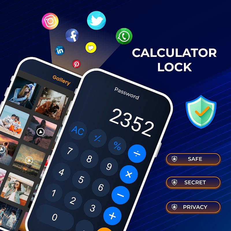 قفل ماشین حساب برنامه برنامه ها، فیلم ها، فایل ها و صدا را مخفی می کند. قفل برنامه مدیریت فایل و ماشین حساب یک مخزن مخفی است که برای مخفی کردن آلبوم عکس استفاده می شود. قفل ماشین حساب به عنوان نمایشگر عکس، خزانه ویدیو و قفل گالری عکس کار می کند. قفل برنامه ماشین حساب و صندوق عکس برای محافظت از فیلم های خصوصی شما. برنامه مخفی کردن قفل گالری و ماشین حساب برای تنظیم رمز عبور عکس ها و خزانه ویدیو استفاده می شود. برنامه قفل عکس برای مخفی کردن برنامه ها، فایل ها و فیلم ها استفاده می شود.