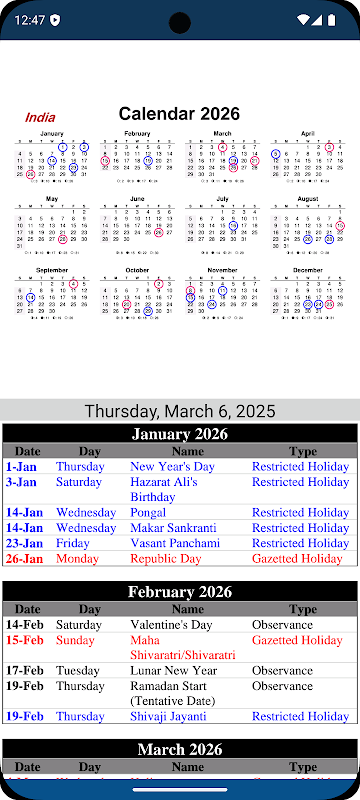 این تقویم تنها یک صفحه است که در آن تمام اطلاعاتی که باید در تقویمی مانند شما وجود داشته باشد، می توانید با کشیدن به پایین لیست تعطیلات را مشاهده کنید.