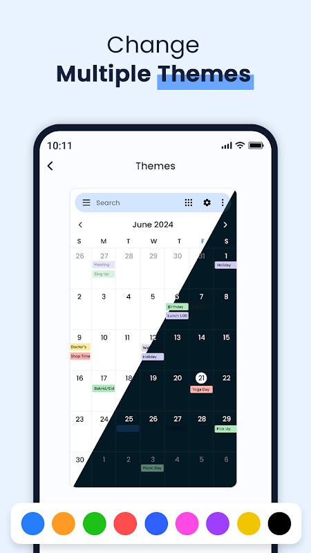 نماهای قابل تنظیم: بین نماهای روزانه، هفتگی، ماهانه و سالانه جابجا شوید تا تصویر واضحی از برنامه خود داشته باشید.